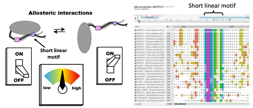 Highly conserved, disordered regions of proteins can make specific interactions that can drastically alter protein behaviour. These regions are called Short Linear Motifs, or SLiMs.